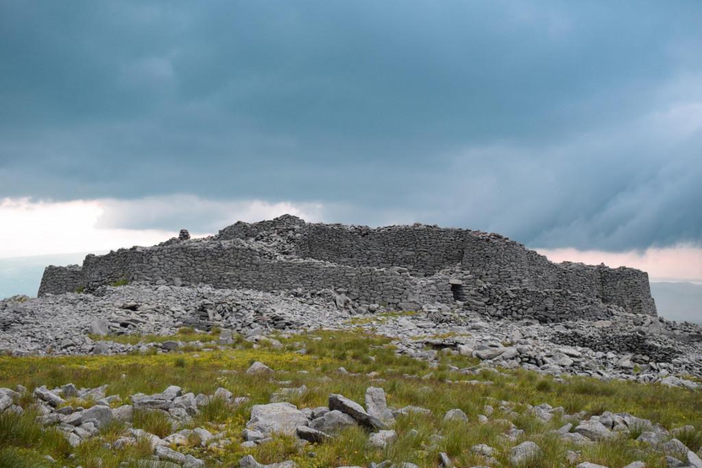 Abuli Fortress is located in Samtskhe-Javakheti, in the municipality of Ninotsminda, near the village Gandza, on the mountain of Small Abuli, 2670 meters from sea level. The monument itself is dated to II-I  centuries, before Christ. It is a cyclopean castle, built with dry laying, with rudimentary stones, here we also met very huge stones, almost large rocks. Abuli fortress looks like a Shaori fortress - the nature conditions are homogenous, as well as the technique of the building, roofless passages, and road destinations. But, still, Abuli Fortress is very distinguished. The construction is grandiose and has very hard planning. The south lap of Small Abuli, in which the castle is situated, is fully covered with moraines. Natural conditions were convenient for the builders, during the work, they were just gently moving the rocks and it was rough for creating hiding places. These secret places have very narrow and low entrances, so it was too hard to get in. From the afar, it is almost impossible to notice them, because it is identical to other stone materials. The central erection consists of a fence, inner castle, and stockroom, also a dwelling place. The stockroom is attached to the building from the inside on the walls. On the surface, we can see stone coffins-styled graves. The height of the walls is 5 meters, and the width is  3 meters.