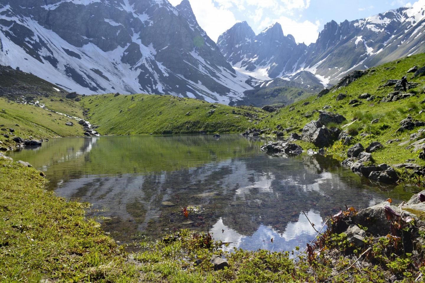 The Black Rocks Lake is supplied with snow, rain, and groundwater. It is also known as Long Lake and Khalakheli.