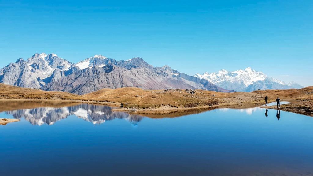 The lakes of Koruldi - located in Upper Svaneti, in Mestia, at 2850 m above sea level. The lakes surround the Caucasus glaciers and peaks. On the panoramic view you will see Shkhara, Tetnuldi, Ushba, Laila and others. The peaks of the lakes leave unforgettable impression on the visitor.